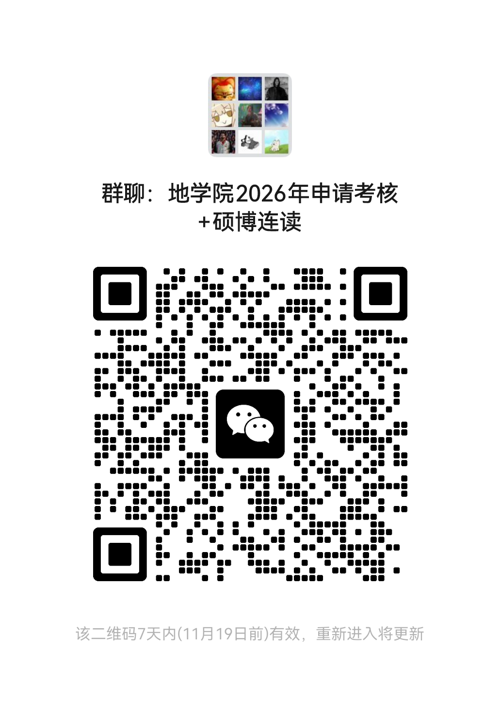 为便于联系,特建立“地学院2026年申请考核+硕博连读”微信群,请考生加入。