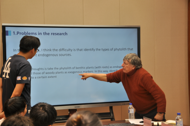 John Dodson教授从古植被古气候研究的多种代用指标到火演化研究,古生态研究、人地关系研究等角度强调了第四纪古植被、古环境研究对人类文明阶段人与自然耦合关系研究的重要性。在澳洲森林火灾研究讲座中,教授系统分析了澳大利亚火灾史的自然与人为因素,包括长期生态驱动‌,人类影响维度,‌科学取证方法以及基于自然火周期的管理启示‌。其孢粉学讲座生动阐释了‌孢粉形态学,孢粉‌产量差异、农业史研究案例及其在‌中国的应用前景。在华中生物多样性形成机制报告中,指出中国不同生物地理区植物差异性演化路径不同。John Dodson教授系统梳理了中国新石器时代以来人口对生态的影响,同时追溯了上新世古气候研究对未来气候研究的重要性。John Dodson受邀参加地球科学学院第十九期晶格学术沙龙,对与会学生的阶段性科研成果一一做了点评,拓展了学生的科研思路,加深对前沿科学问题的深刻思考。