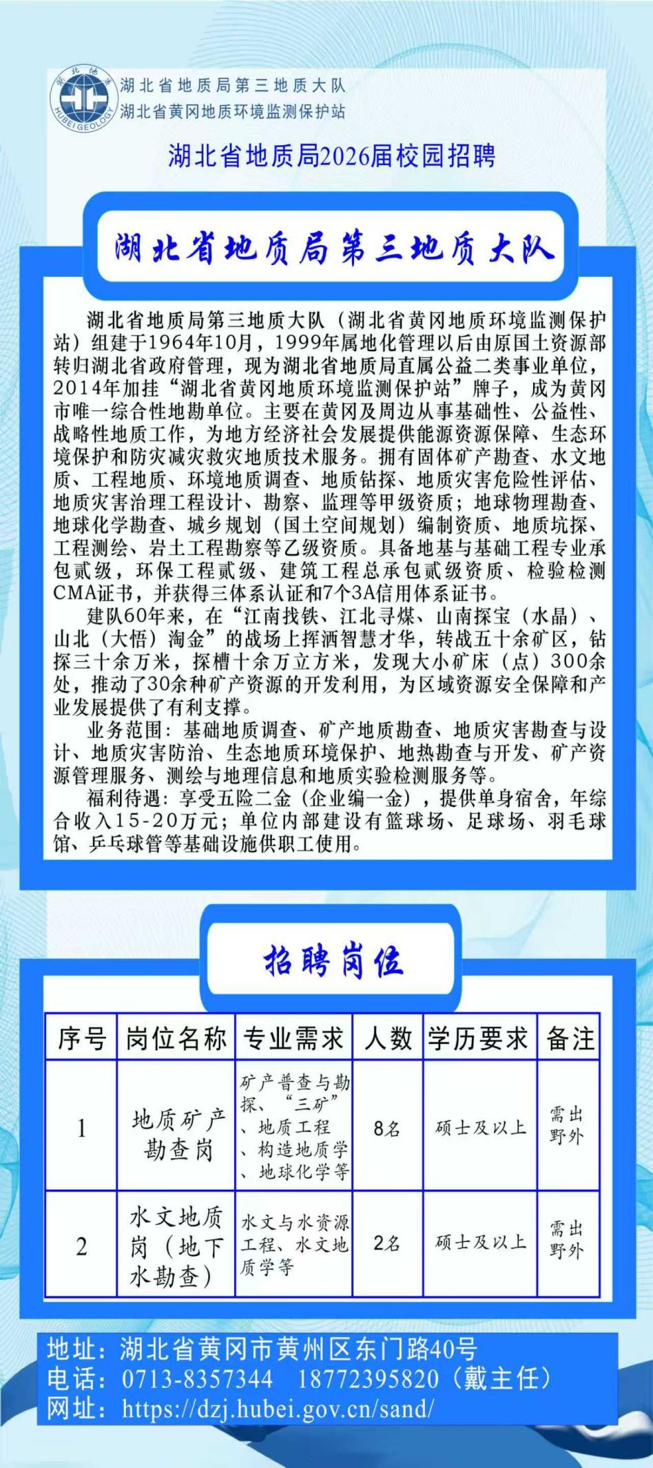 湖北省地质局第三地质大队(湖北省黄冈地质环境监测保护站)招聘简章
