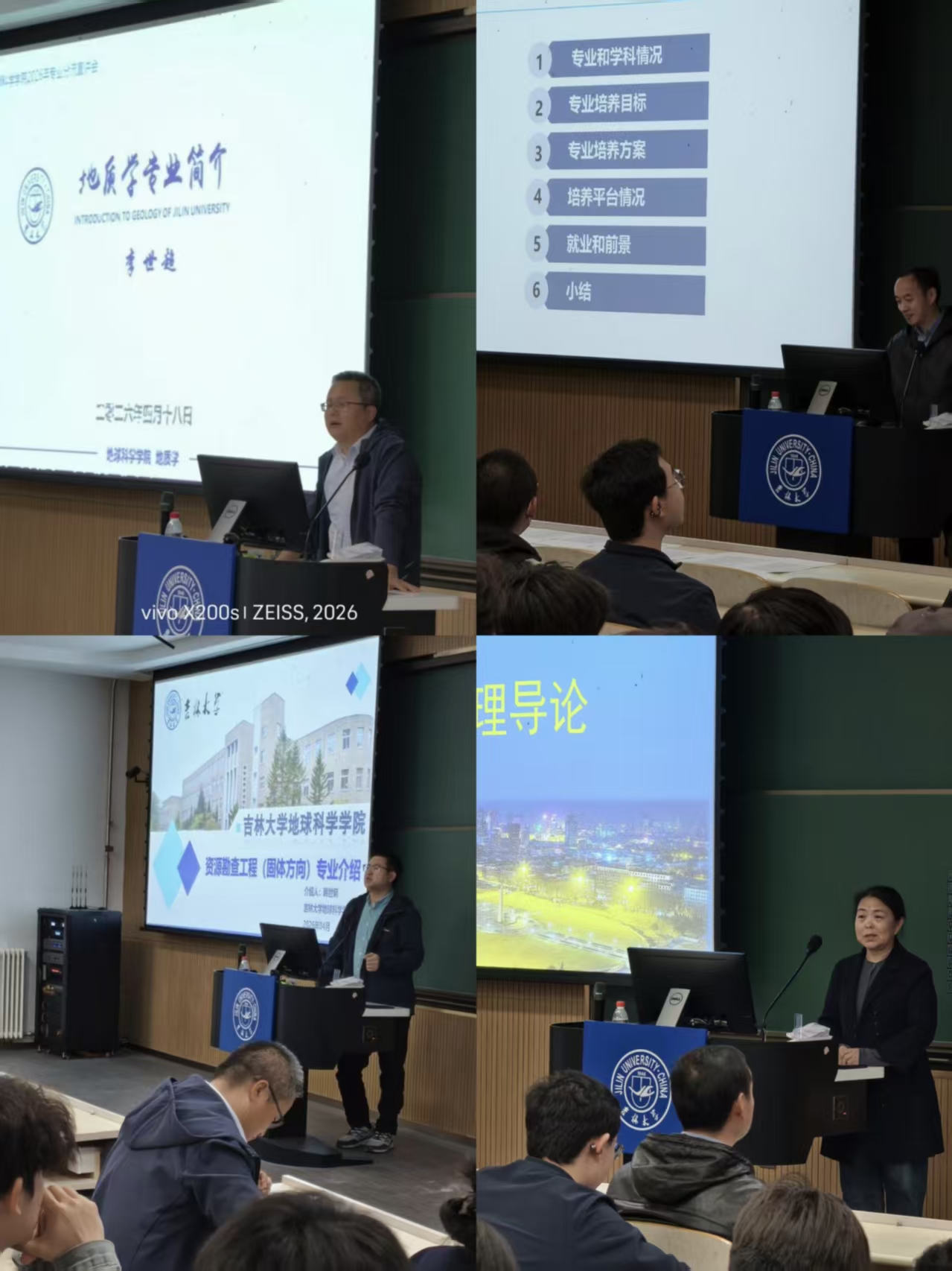 为引导2025级本科生明晰专业定位、科学规划学业与发展路径,吉林大学地球科学学院于2026年4月18日,在李四光教学楼召开2025级专业分流座谈会。学院本科教学副院长、各系主任、本科教学管理办公室主任、学生工作办公室相关人员以及全体2025级本科生参加座谈。
