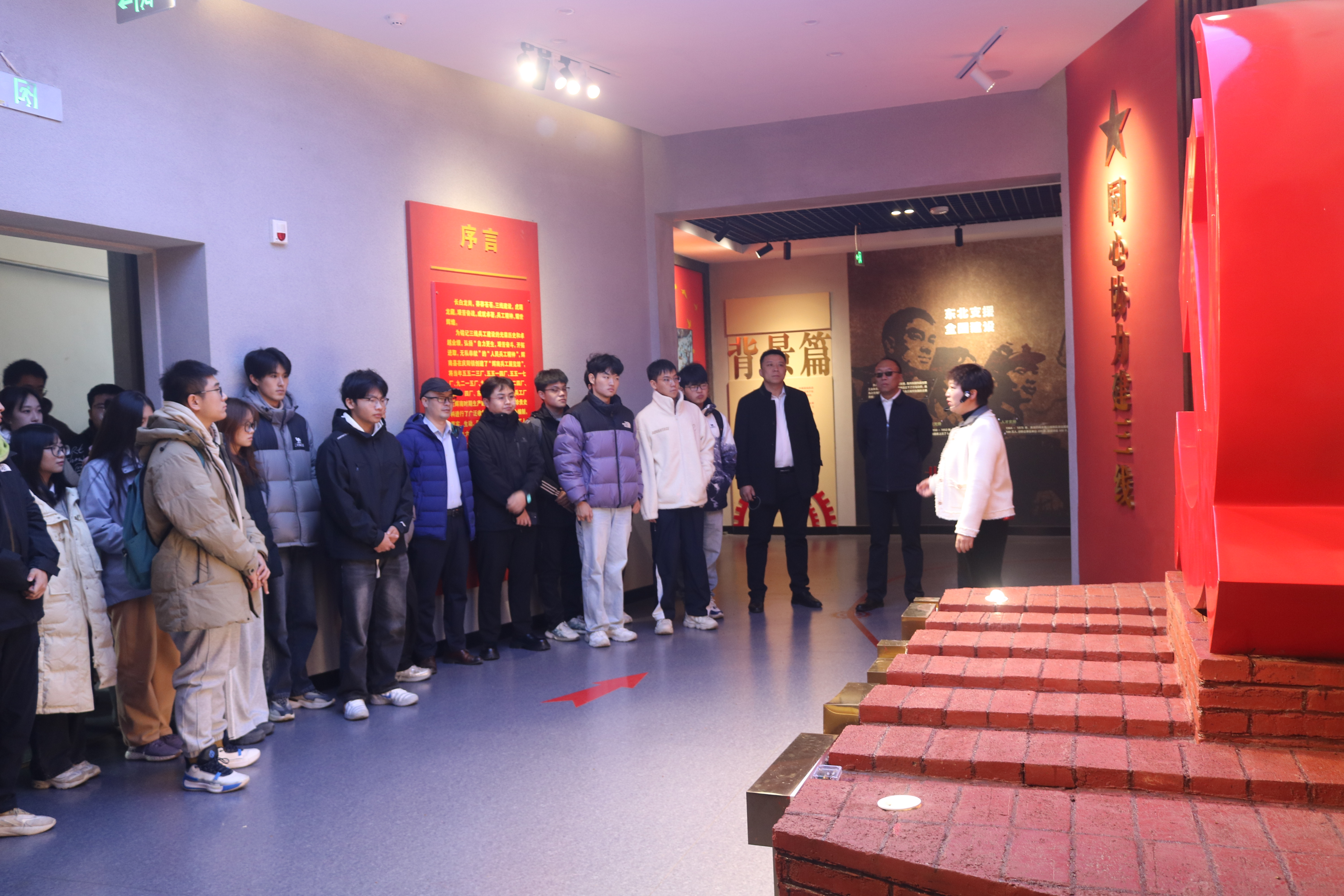 10月25日清晨,参训党员来到辉南县庆阳镇,开启首日学习。在讲解员的引导下,大家一起步入辉南兵工展览馆,依次参观了“筚路蓝缕·创业维艰”、“艰苦奋战·保障前线”、“科技自强·大国利器”等主题展厅,并一起聆听了微党课《讲述兵工记忆》。展馆内,珍贵的历史图片、厚重的实物展品、逼真的场景复原,无不诉说着老一辈军工人自力更生、艰苦奋斗、无私奉献、为国铸盾的崇高精神。参训师生在一件件展品前驻足凝视,认真聆听背后的故事,深刻感受到了新中国国防科技工业从无到有、由弱到强的辉煌历程,以及人民兵工为民族独立和解放事业所做出的不可磨灭的贡献。