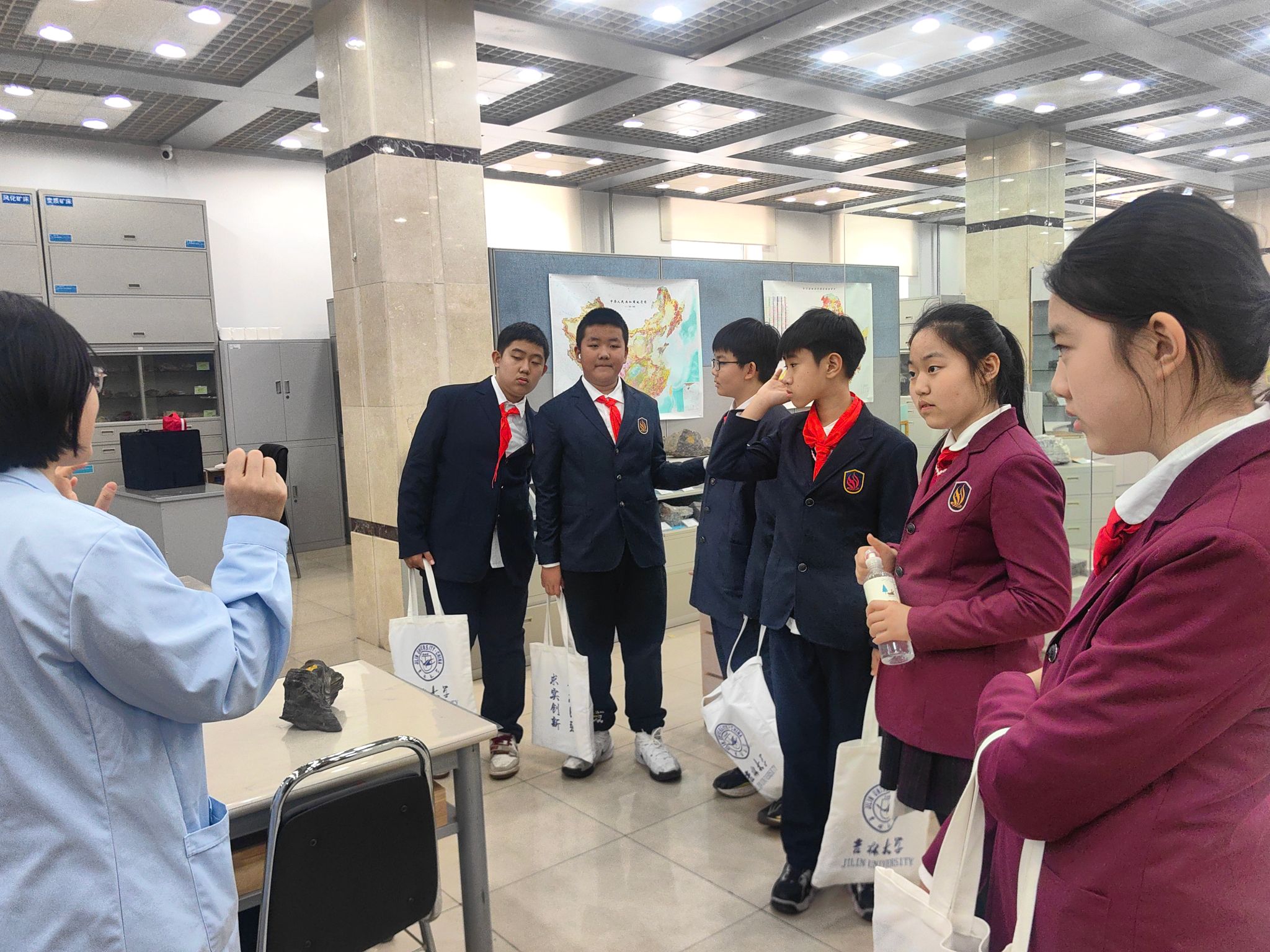 4月17日,我院实验教学中心迎来了六名“小访客”——来自东师附小净月实验学校六年九班第三组的小学生。怀揣着对地球科学的好奇之心,孩子们开启了一场沉浸式的地质职业体验之旅。本次活动通过实地参观、科普讲解、互动问答等丰富形式,引领孩子们走出课堂,近距离感受地质科学的独特魅力。