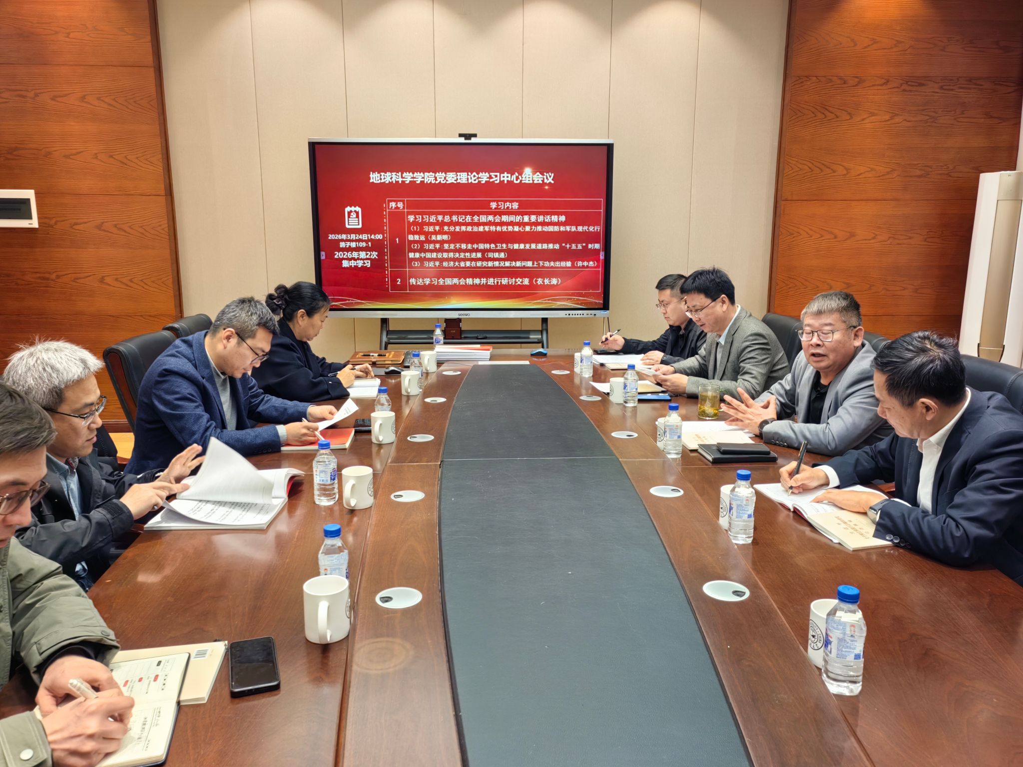 3月24日,地球科学学院在鸽子楼109-1会议室召开党委理论学习中心组(扩大)会议,学院理论学习中心组成员、班子成员参加会议。会议由党委书记衣长涛主持。