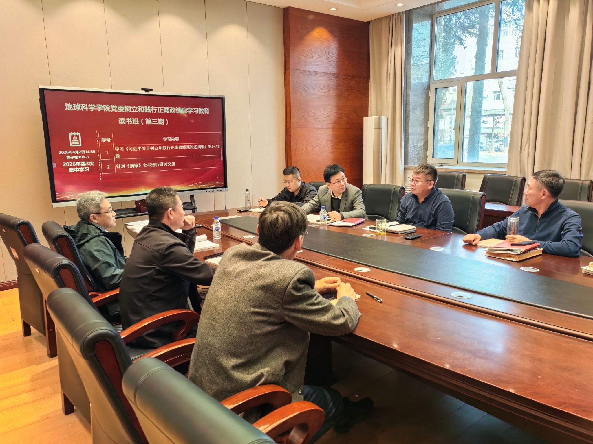 4月2日,地球科学学院在鸽子楼109-1会议室举办树立和践行正确政绩观学习教育读书班(第三期),学院领导班子成员参加会议。会议由党委书记衣长涛主持。